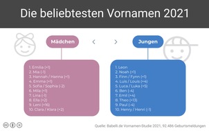 Auswertung Das Sind Die Beliebtesten Vornamen 2022 Presseportal